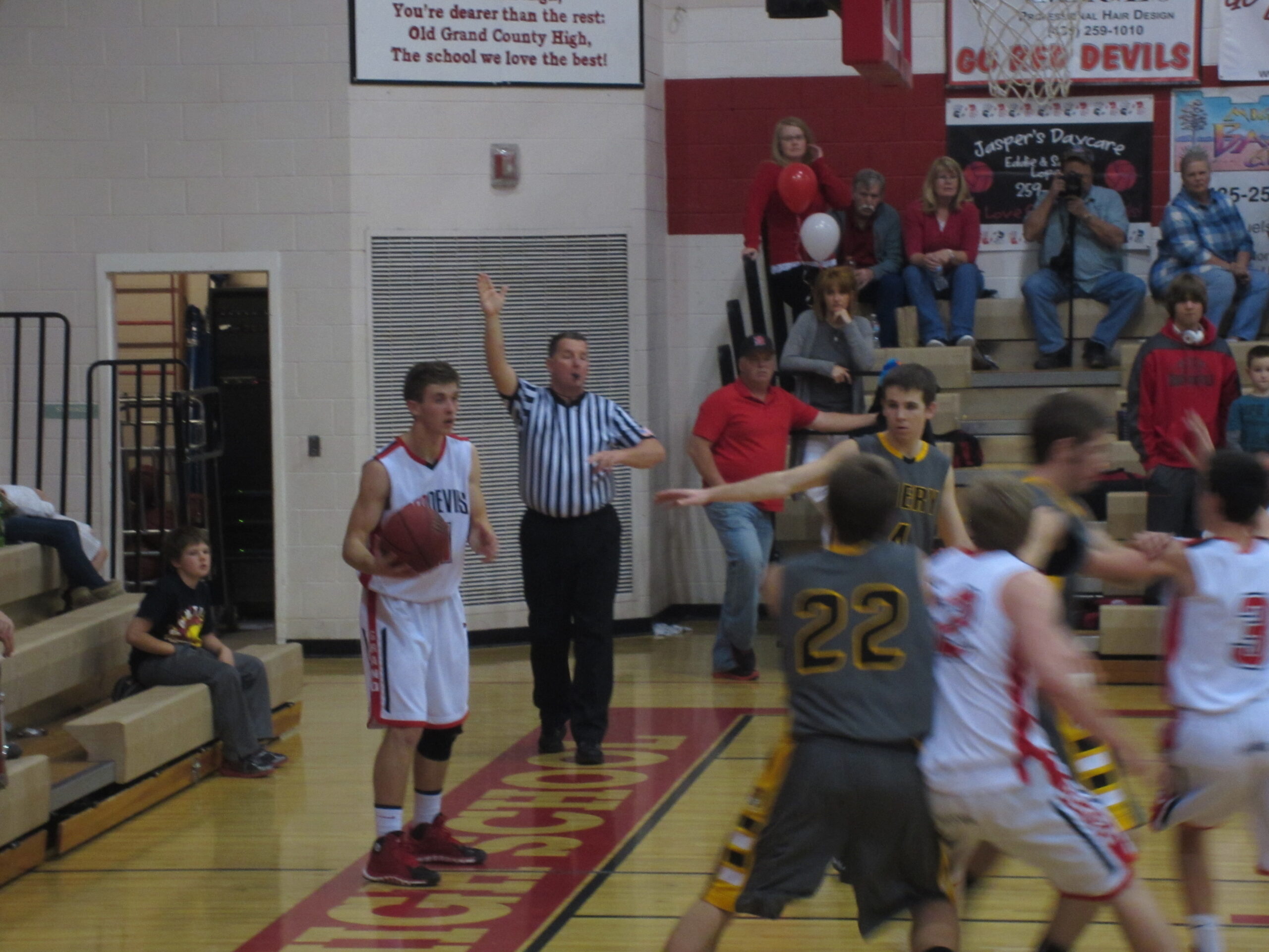 Grand junior Jasen Christensen scored a basket at the beginning of the fourth quarter to give the Red Devils their first and only lead of the game at 49-48. Wilstead scored a basket and foul shot on Emery’s next trip down the floor, drawing the foul on Risenhoover, a call many thought should have been a charge against Wilstead.