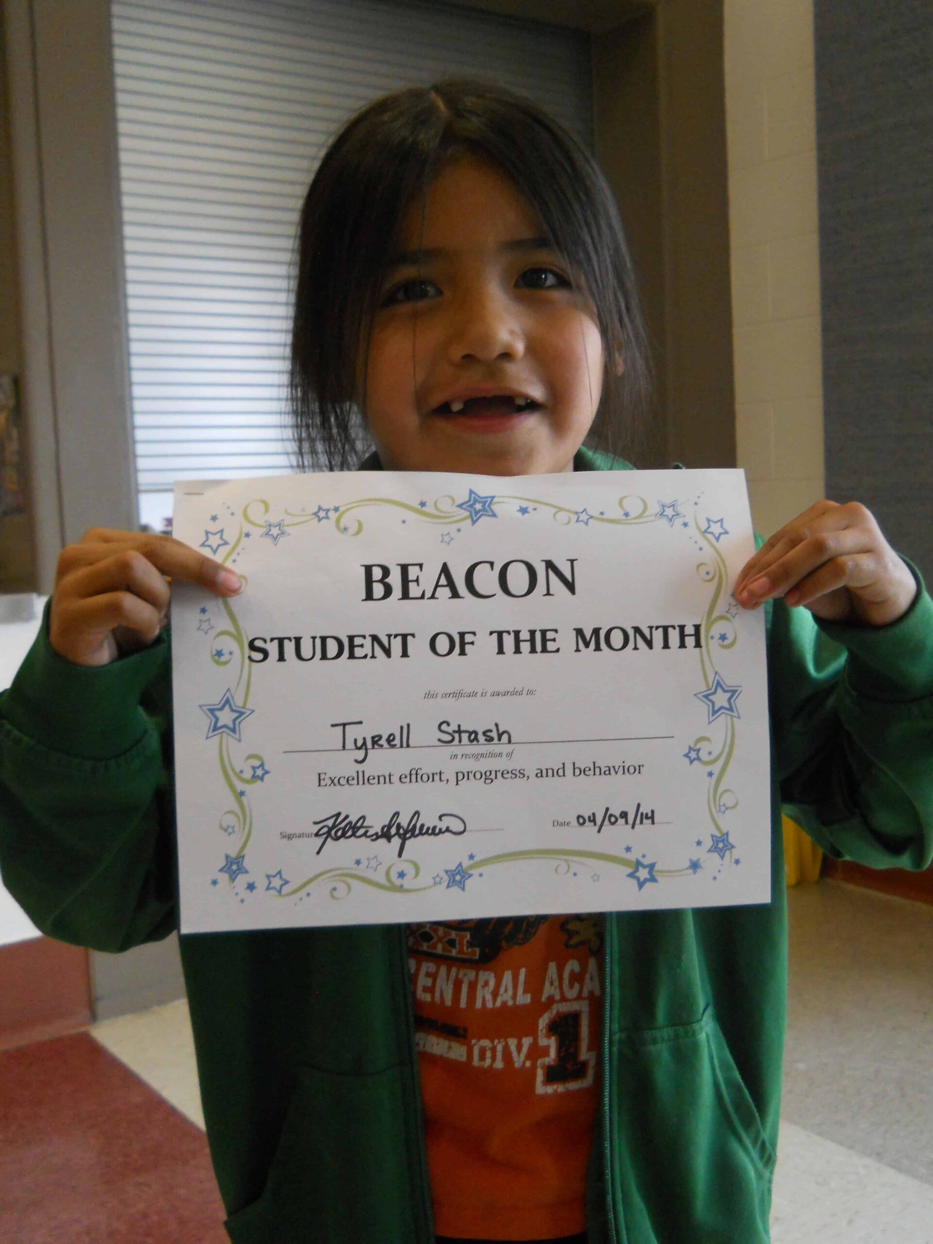 The BEACON Enrichment student of the month is Tyrell Stash, son of Herbert Stash and Charlene Betsuie and a first-grader at HMK.