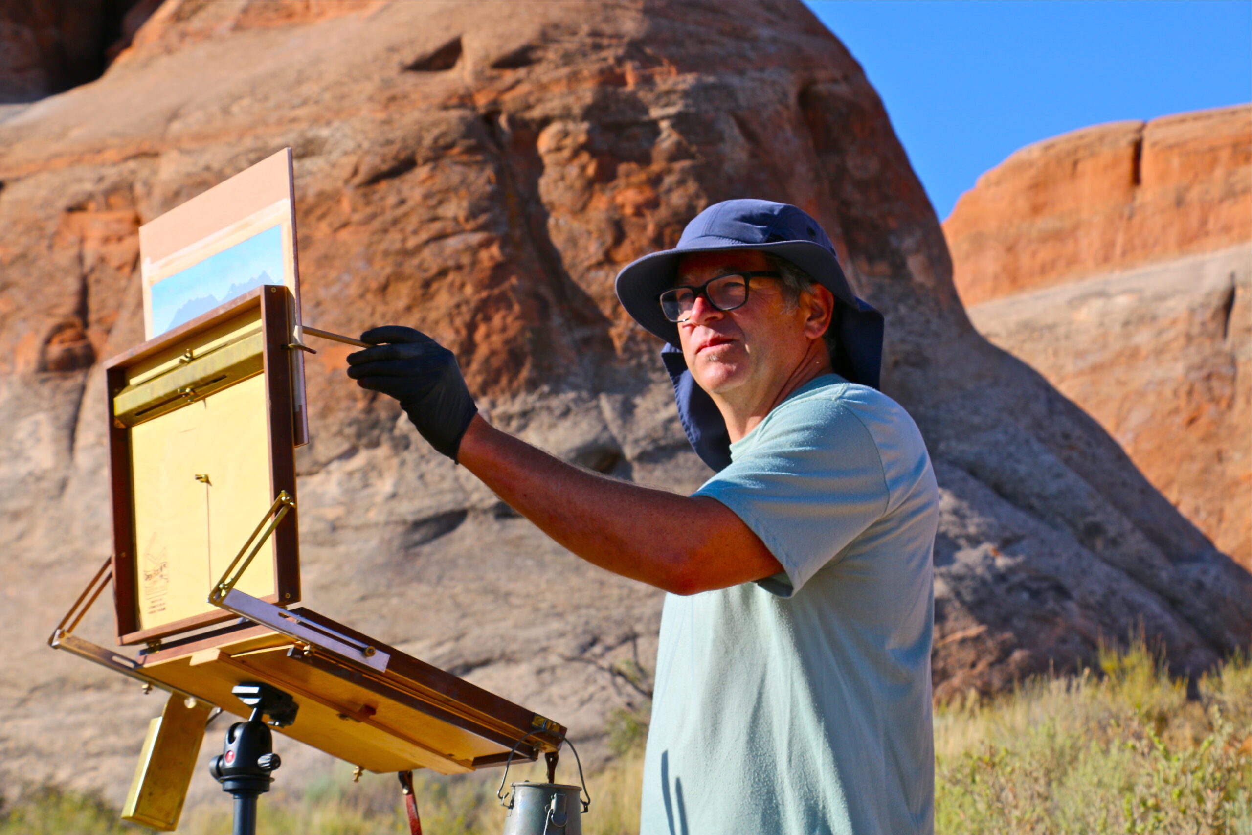 Barrett McDevitt of Exeter, New Hampshire, painted the scenes near Arches National Park’s Tunnel Arch on Friday, Aug. 12.