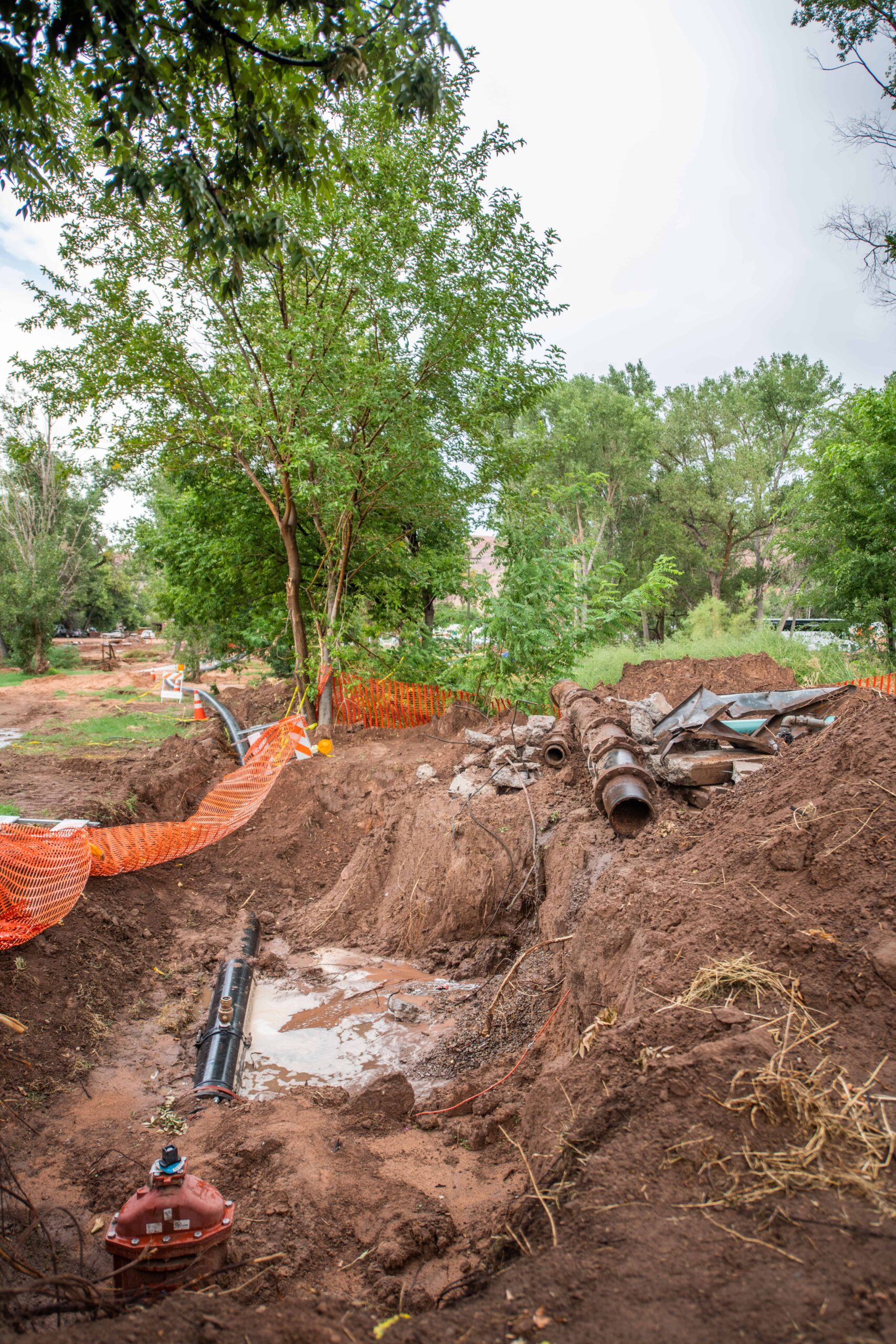 Crews have been working to fix the city’s waterlines, which were damaged during the flood, pictured here behind the Gonzo Inn in September 2022. [Alison Harford/Moab Sun News]
