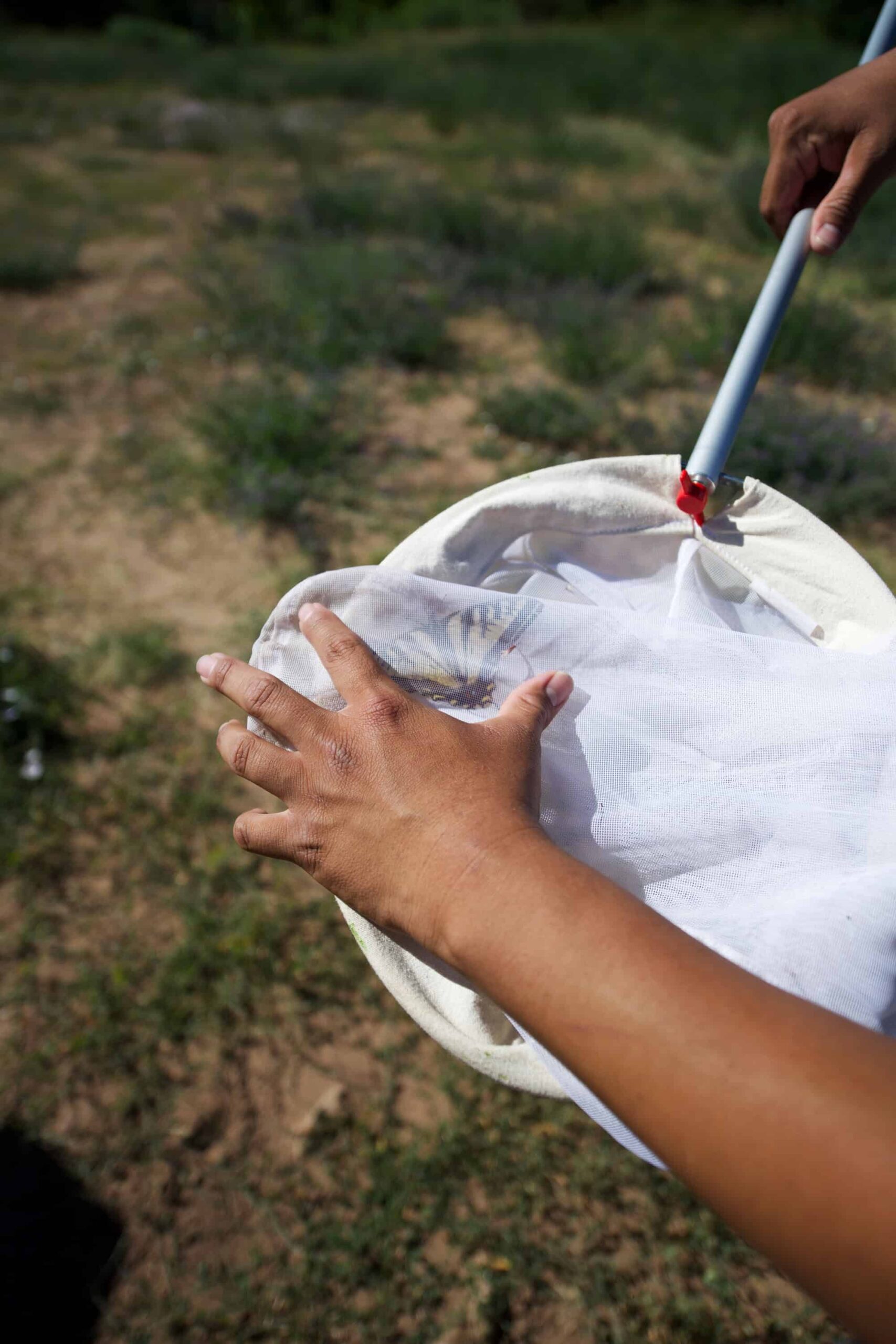 The count works like this: the small group will pile out of their cars to spend an hour or so in each area, fanning out to cover more ground. They’ll shout out the species of butterflies they see, if they know it: common checkered skippers are easy to spot given their white color, as are the western clouded sulfur. With each shout, Begaye will make another tally on his identification sheet. If the group can’t identify a certain type of butterfly—the swallowtails, for example, are gorgeous, but tricky to identify by exact species—Quirin or Begaye will attempt to catch it in a net, then identify the species close-up with Quirin’s detailed butterfly species book. If a butterfly still can’t be identified, Quirin will take a photo of it to send to Hannawacker, the butterfly expert.