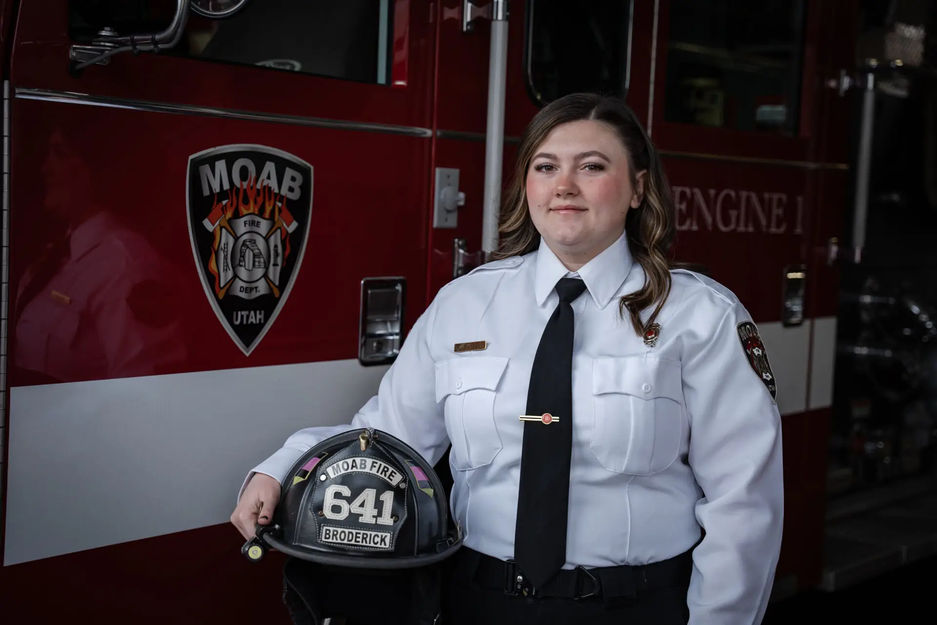 Originally from Mancos, Colorado, Kirsten Broderick has called Moab home for the past 8 years and has been a dedicated member of the Moab Fire Department for 3 years. Her motivation for becoming a firefighter stemmed from a lifelong interest in emergency services and a desire to make a positive impact on people’s lives.
