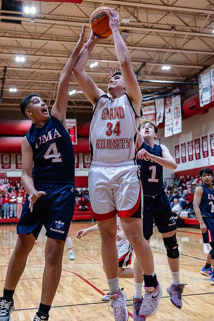 The Grand County Varsity Boys Basketball team bested Utah Military Academy – Hill Field High School at a home game on February 14 with a final score of 95-19.