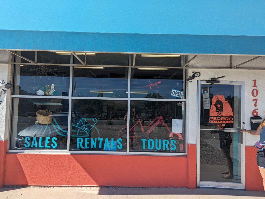 To rent an e-bike for Pedego Moab, visit https://pedegoelectricbikes.com/dealers/moab/ or stop in form 9-5 at the store: 1076 S Main St, Moab, UT 84532