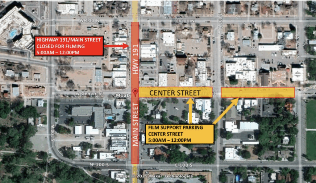 According to Bega Metzner, director of the Moab to Monument Valley Film Commission, filming will require closing Main Street from 100 North to 100 South, as well as Center Street from Main to South 100 East, from 5:00 a.m. to around noon. The production has requested no overnight parking on Tuesday, July 29 to prepare for the early morning shoot.