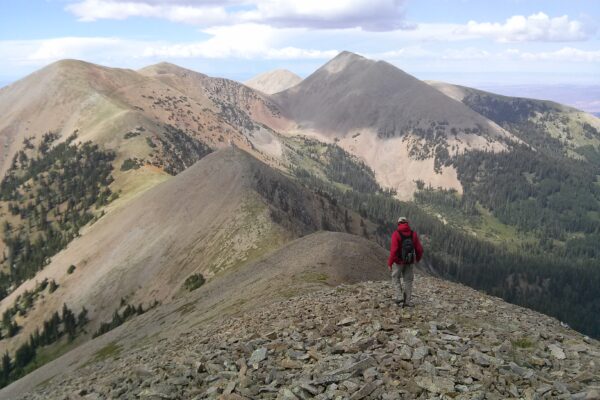 Max Forgensi with mountains ahead on an all-day hike across the La Sal Mountains. Forgensi and Eric Trenbeath began their transverse of the La Sal Mountains in Lackey Basin at 6 a.m., then…