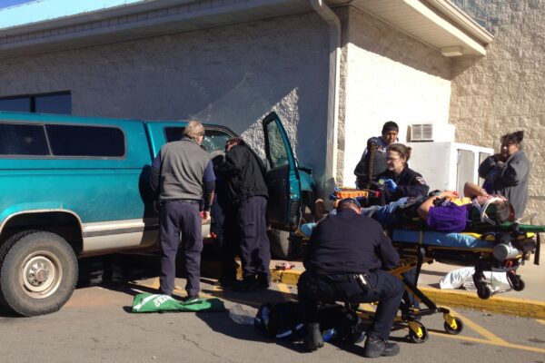 A driver was choking on food when he ran his GMC truck into the City Market on Friday, Feb. 1. His wife attempted to help him, when she accidently pushed on the accelerator….