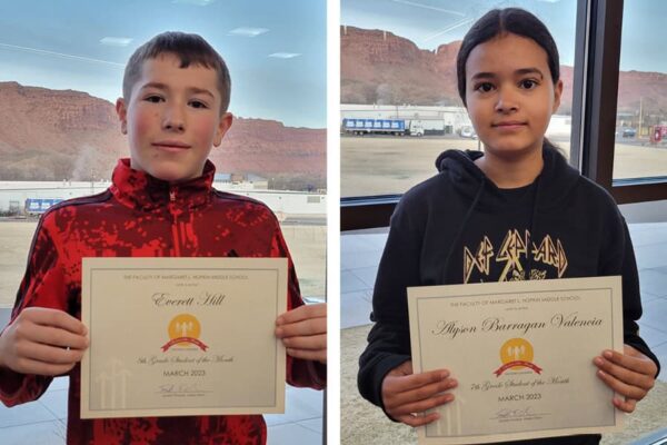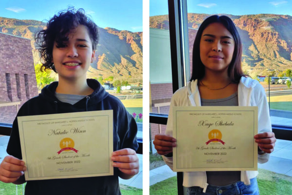 Congratulations to the Margaret L. Hopkin Middle School students of the month: seventh-grader River Shaw and eighth-grader Michael Vigil. School staff says that River Shaw is the epitome of what a good student…